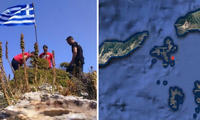 ελληνική σημαία από τρεις νεαρούς Έλληνες στην βραχονησίδα «Μικρός